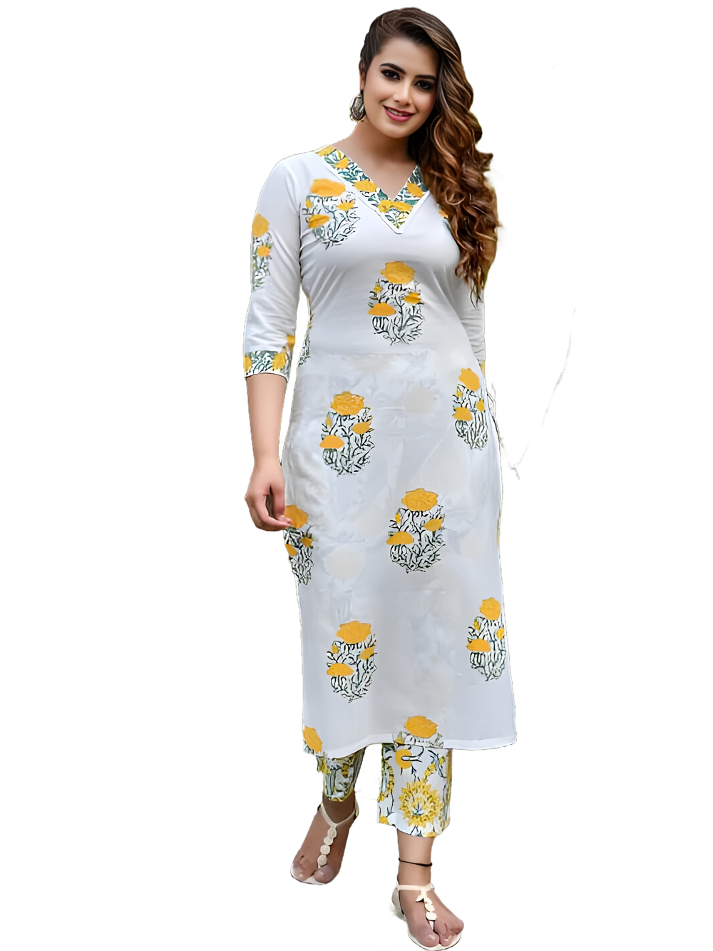 Floral Printed V-Neck Straight Kurta With Trousers