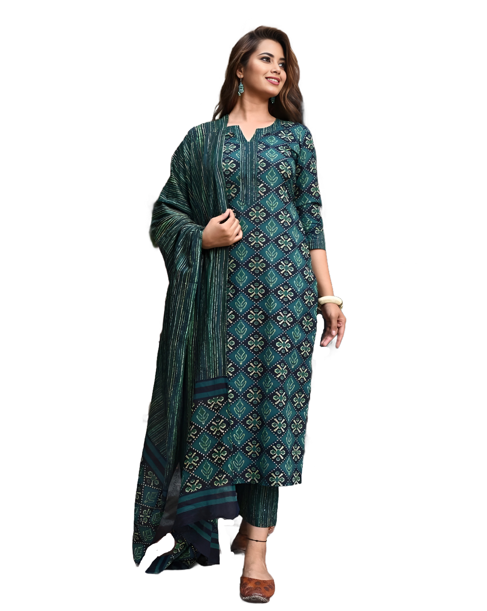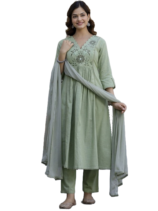 Ethnic Motifs Embroidered Kurta & Trousers With Dupatta